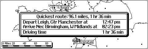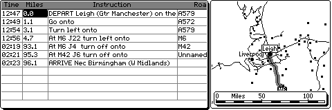 The Psion excels in mixed modes, using its wide screen to display two types of data at the same time. Autoroute is a great example of this, where you can display the route table and a small portion of the map side by side.