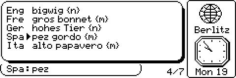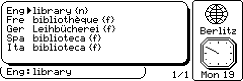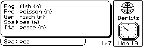Berlitz Interpreter is a multi-way interpreter, interpreting words between English, French, German, Spanish and Italian for the Psion 3 and up.