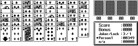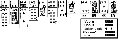 Play Logjam by clearing all stacks by selecting a minimum of three cards at a time from the same suit. Jokers are wild. If a game is cleared, the number of jokers is reduced and play repeats (there’s a mechanic for a locked Joker but I’m honestly unsure on that). It’s a passable solitaire game, there’s a betting mechanic.