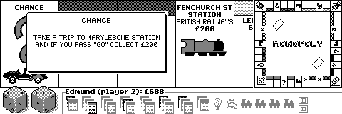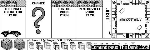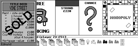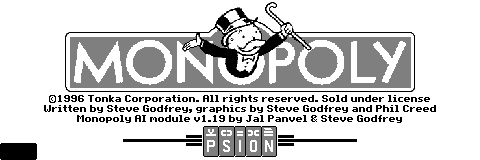 A faithful port of Monopoly by Steve Godfrey and Phil Creed for the Psion 3a and up, published in 1996.