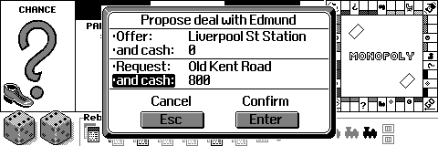 Offers come from other players, or you can make offers to other players for property and cash. I found the willingness of the computer to trade quite low, irrespective of how generous the offer is. Not sure if that is intentional or not.
