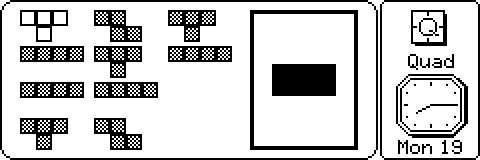 A simple puzzle game involving placing tetris puzzle pieces to complete a pattern. By KP Holloway for Widget Software, copyright 1992.