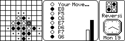 An excellent game of Reversi by KP Holloway for Widget Software, copyright 1992. Five difficulty levels and an excellent UI.