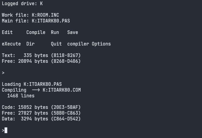 TLDR; I’ve released the first version of my rogue-like game - “In The Dark” for CP/M, DOS and modern systems. You can download the binaries for each system and source code from GitHub. I hope you enjoy it.